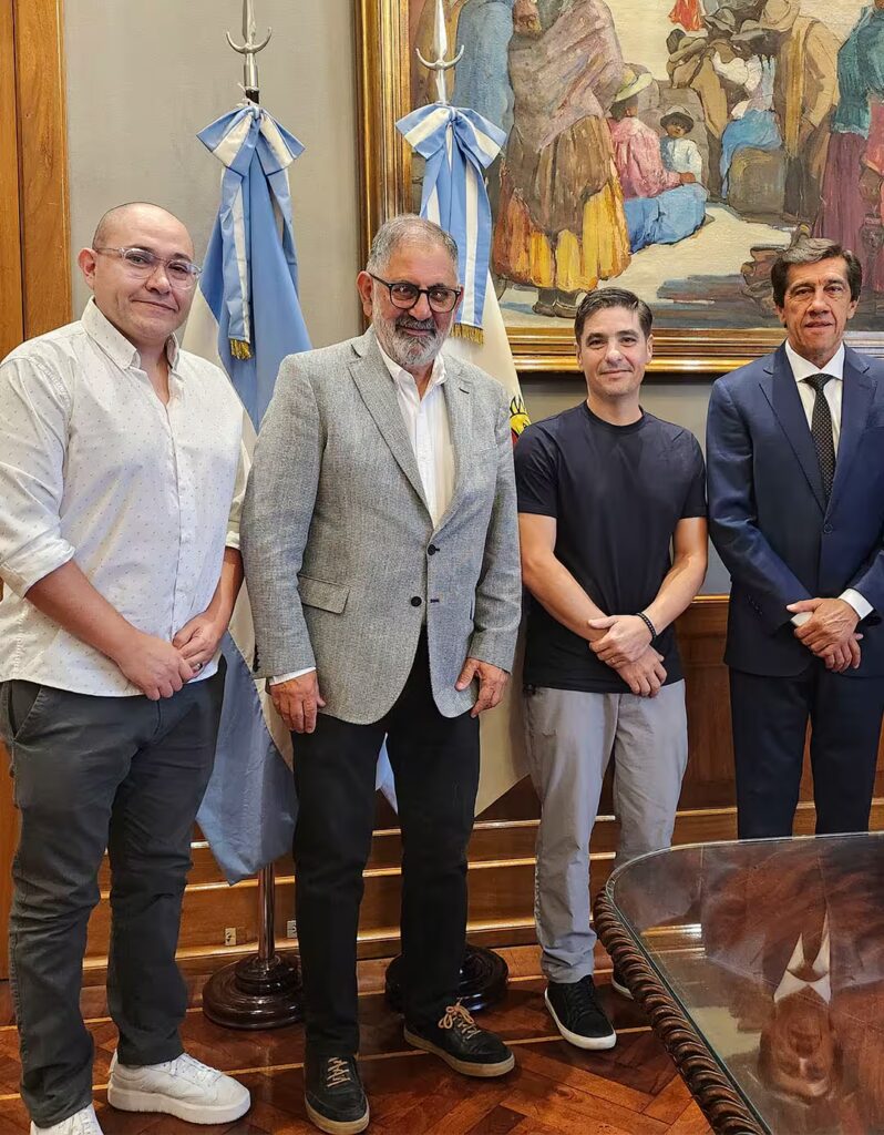 El Presidente y la Secretaria del Colegio, Arq. Carlos Cícero y Arq. Graciela Bazán, junto al Arq. Agustín Puglisi, miembro del Tribunal de Ética, mantuvieron una reunión con el Gobernador de la Provincia, CPN Carlos Sadir, y el Intendente de San Salvador de Jujuy, Arq. Raúl Jorge, en la que se abordaron diversos temas vinculados al desarrollo urbano, la planificación estratégica y la obra pública en el ámbito provincial y municipal.