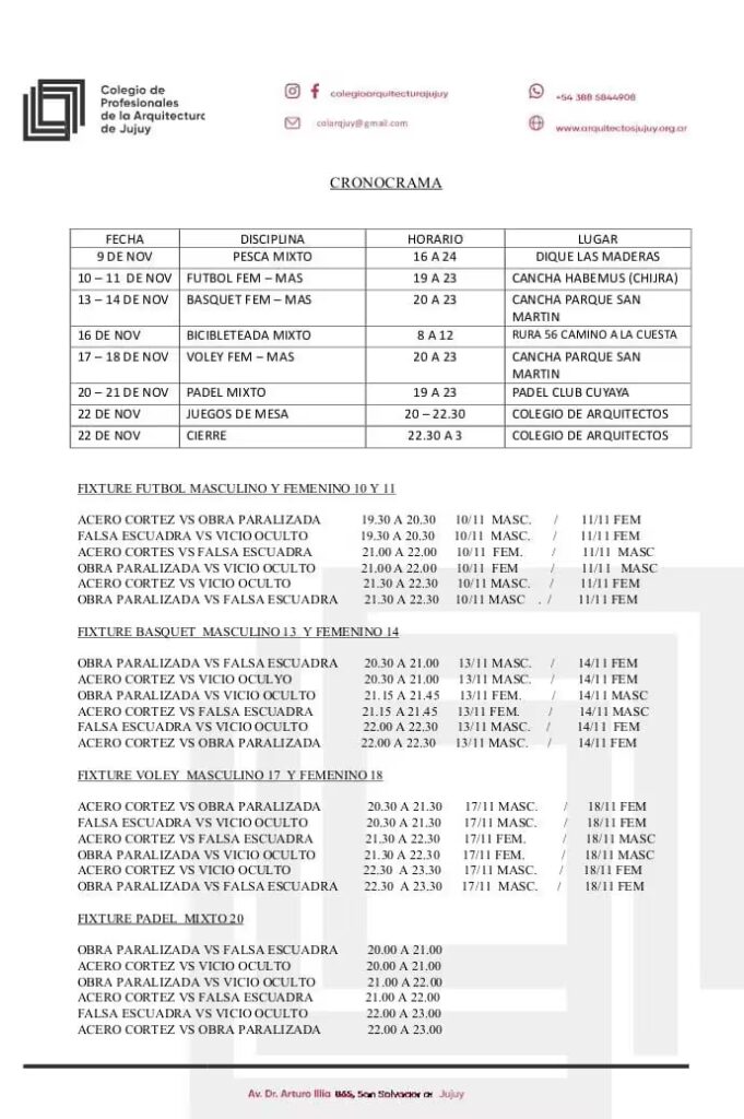 10 y 11 de noviembre | Fútbol femenino y masculino | De 19 a 23 hs | Cancha Habemus (Chijra) |