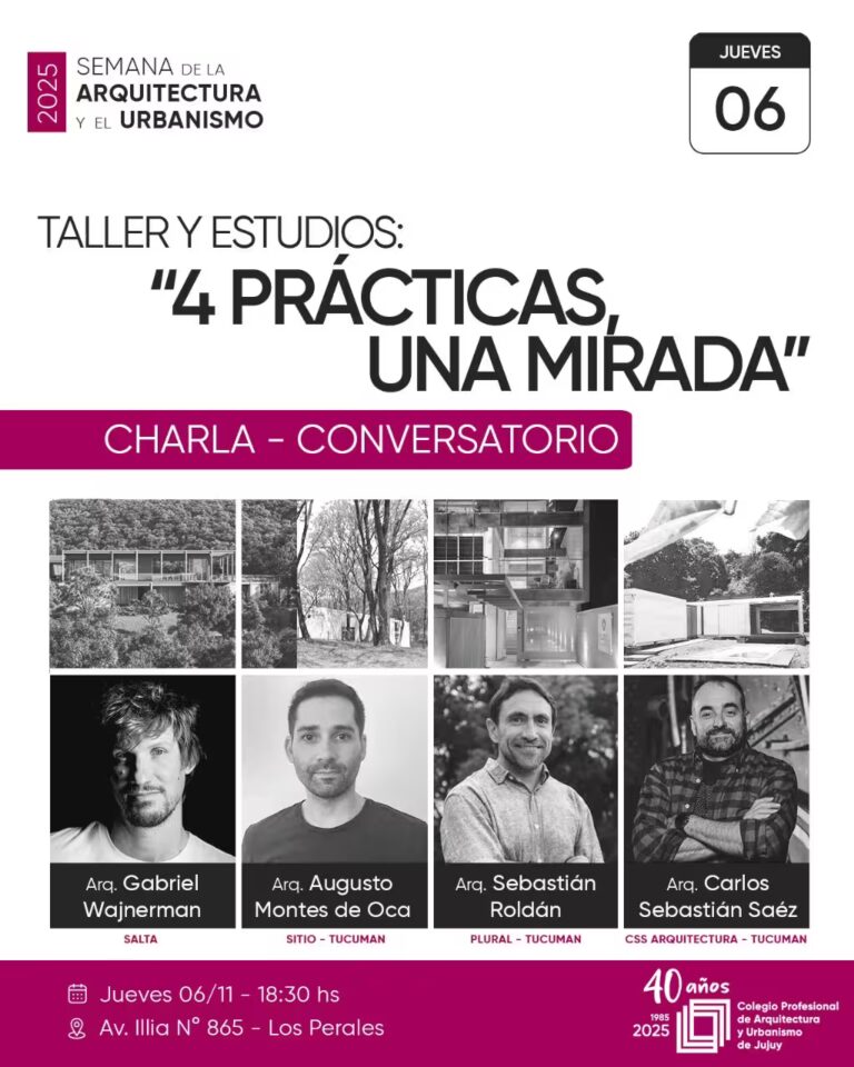 📐 Durante la charla, cada estudio compartirá obras y experiencias que revelan su manera de abordar el proyecto, y se presentarán proyectos compartidos donde las ideas y los intereses comienzan a entrelazarse.
